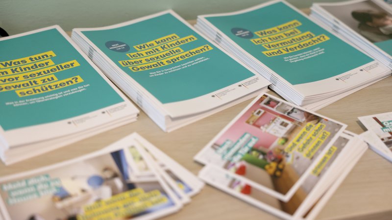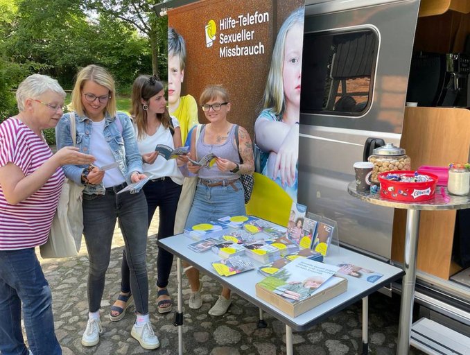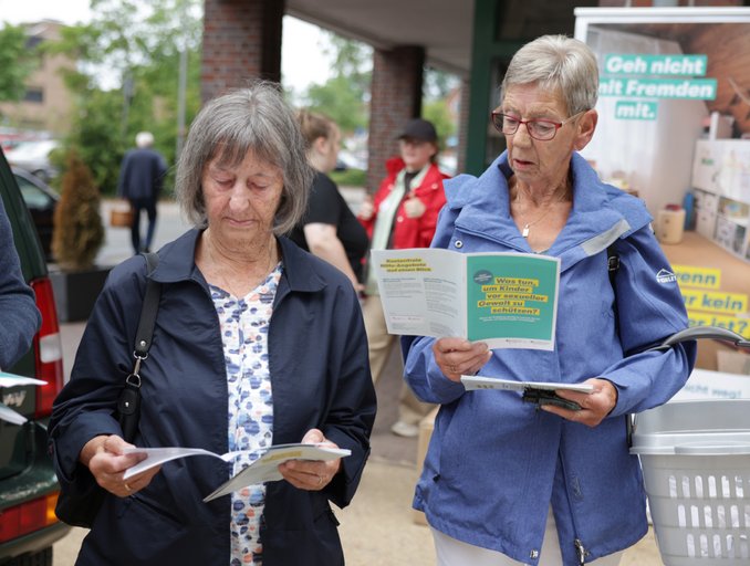 Wie kann man Kinder vor sexueller Gewalt schützen? Materialverteilaktion am Marktplatz in Walsrode. Juni 2023.